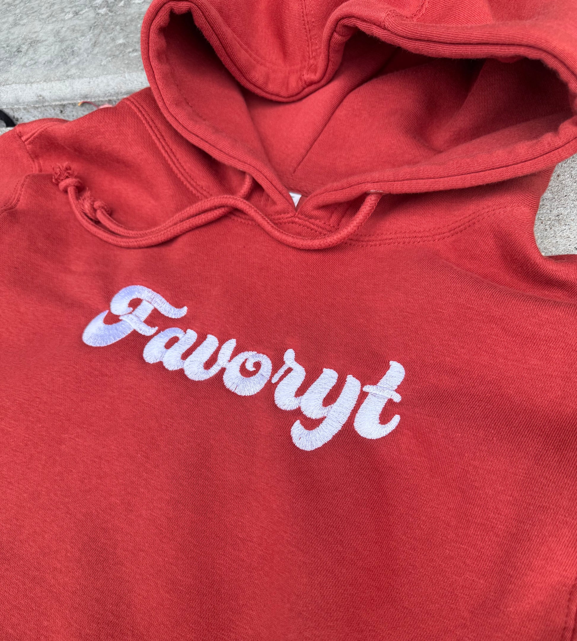 Featuring a bold, large-stitch embroidered FAVORYT logo, this hoodie was made for everyday wear — simple, clean, and built to stand the test of time. Each garment is dyed using water-saving techniques and made with sustainably sourced cotton, offering comfort you can feel good about inside and out.